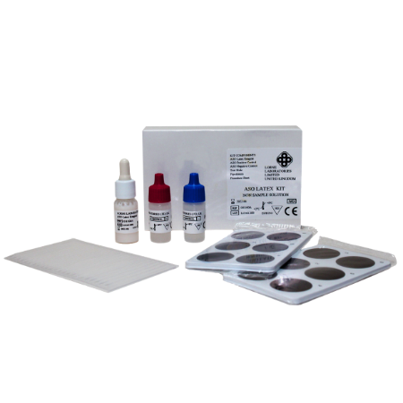 Prueba de látex dirigida para usarse de forma cualitativa y semicuantativa, Lorne ASO Latex Kit es una prueba serológica para la detección de anticuerpos ASO. El Lorne ASO Latex Kit es una prueba serológica para la deteccion de anticuerpos ASO. Los reactivos no contienen o consisten de sustancias CMR o sustancias de disruptores endrocrinos o sustancias que puedan resultar en sensibilización o una reacción alérgica para el usuario.