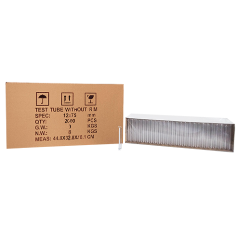 Tubo de ensayo 12 x 75 mm sin borde de Vidrio - Caja con 2000 piezas - Kabla