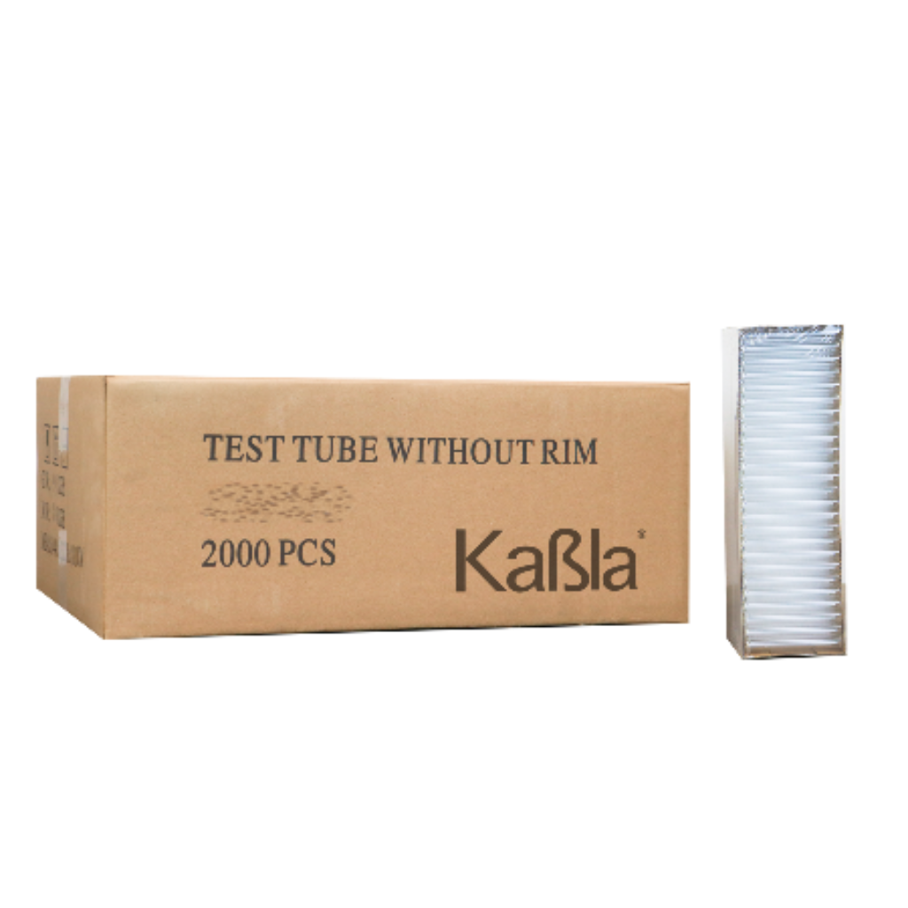 Tubos de ensayo, dimensiones 13 x 100 mm, sin borde de vidrio. Presentación en caja de 2000 unidades. Fabricante: Kabla. Estos tubos de ensayo son ideales para aplicaciones en laboratorios y entornos de investigación, proporcionando una opción confiable y de alta calidad para la manipulación de muestras. Su diseño sin borde de vidrio minimiza el riesgo de rotura y garantiza una mayor seguridad durante su uso.